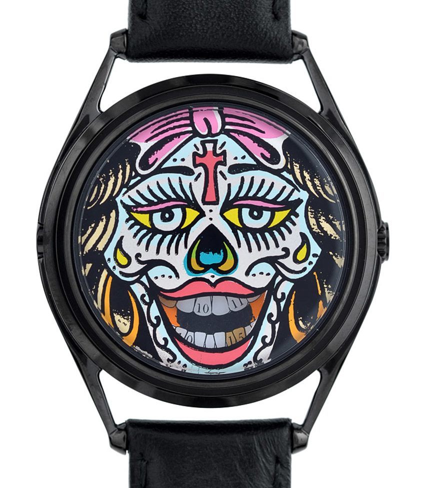 對于名為 Time Savior 的手表,Jones Watches 先生與紐約藝術家 Kirsten Ulve 合作,后者表示受到“媚俗耶穌”美學的影響。在這里,耶穌基督的性格以多種不同尋常的方式融入了流行文化。Time Savior 表盤上釘死耶穌的卡通風格意在暗示“耶穌什么時候會做什么?”的主題。佩戴者每次看表。