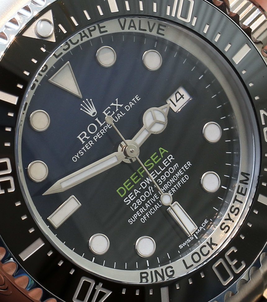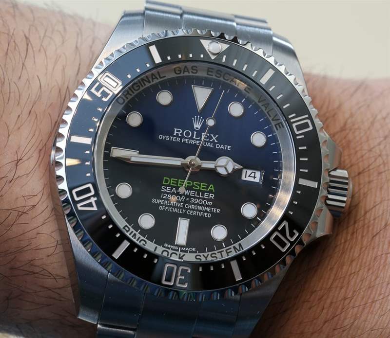 讓我們先談談新的 D-Blue 表盤本身。如您所知,表盤的設計旨在模仿詹姆斯·卡梅隆 (James Cameron) 在2012 年的深海挑戰者號潛水任務中的航行(此處討論)。表盤的藍色到黑色漸變類似于海水,當你越深入時海水會變黑,因為陽光只能穿透這么遠。“DEEPSEA”標簽的綠色與深海挑戰者潛水器的顏色相同。詹姆斯·卡梅隆 (James Cameron) 本人是一位狂熱的手表愛好者,并且有一段時間一直是勞力士 (Rolex) 的忠實擁護者。他的主要手表似乎是勞力士深海。廣告留言廣告信息結束