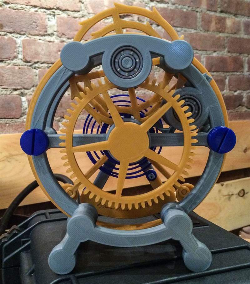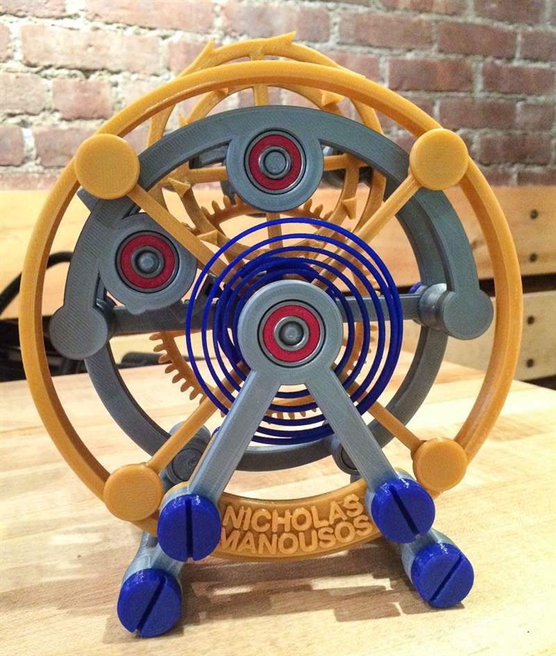 陀飛輪 1000% 使用 PLA 塑料(聚乳酸)打印,之所以選擇這種塑料是因為它的強度和能夠形成相對精確的零件的能力。具有諷刺意味的是,塑料是基于玉米淀粉的,因此可以生物降解。塑料對熱很敏感,因此尼古拉斯建議人們不要將陀飛輪放在溫度可能達到 300 度的地方或附近。