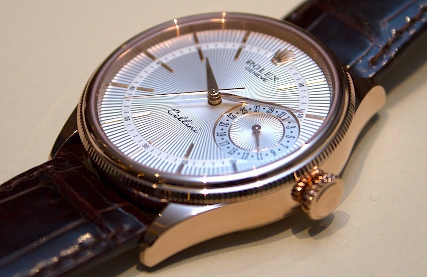 在2014 年勞力士切利尼禮服手表的三款新品中,可以說勞力士切利尼日歷型可能是最美觀的。當(dāng)然,Rolex Cellini Time(僅指示時(shí)間)簡潔明了,易于挑選,Cellini Dual Time為那些喜歡在行李中裝上燕尾服的人提供了一款很棒的旅行表,但 Cellini Date 混合了勞力士全新扭索飾紋機(jī)刻表盤的美麗美學(xué)與日期指示器的實(shí)用性。