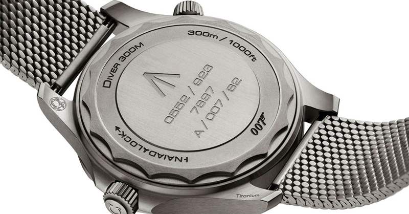 您會(huì)在表殼背面找到特殊的雕刻和銘文,其中包括帶槍的 007 標(biāo)志以及在啞光熱帶棕色鋁制表盤 6 點(diǎn)鐘位置也可以找到的向上箭頭。這款表背的一大優(yōu)點(diǎn)是它具有 NAIAD 鎖定系統(tǒng),可將表背及其雕刻與手表的方向?qū)R。