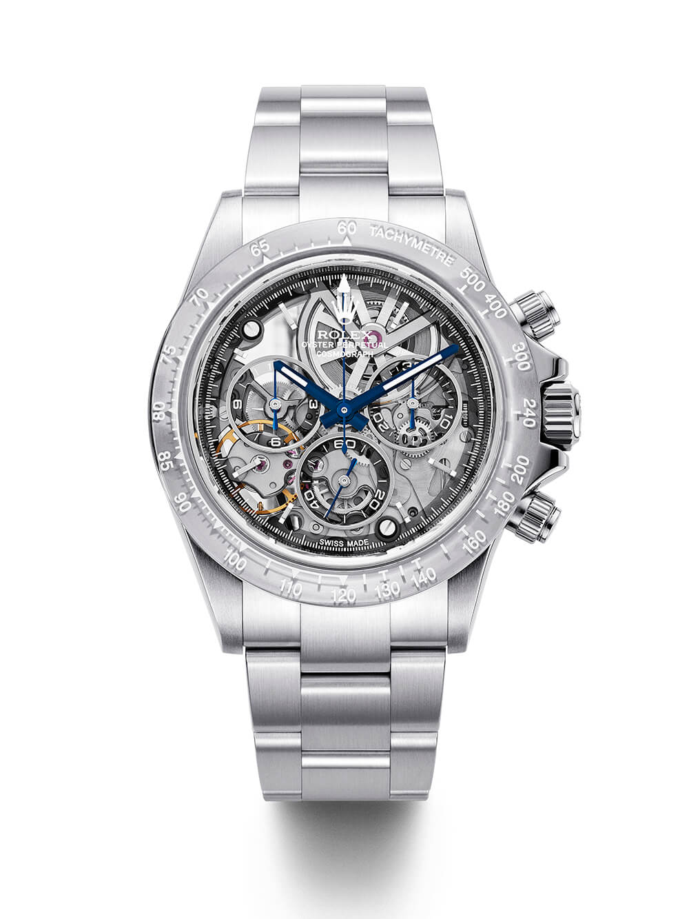 這兩個部分都是完全手工完成的,需要荒謬的工時和專業知識才能完成。更棒的是,它們呈現出內部鏤空機芯的完美視圖,提供我們以前在任何勞力士從未見過的那種輕盈和透明感。配有偏光計時盤和火焰藍指針,在可讀性和鐘表暴露主義之間取得了很好的平衡。