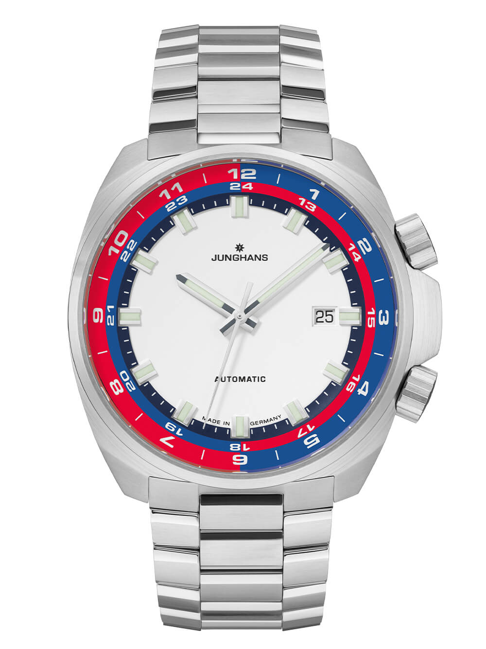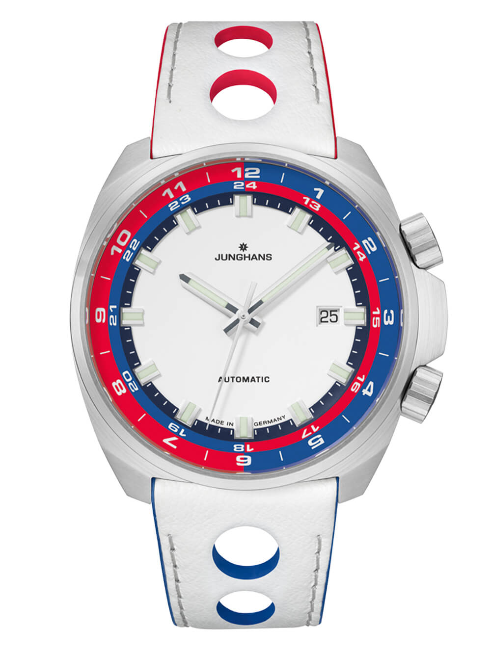 恰如其分的雪白表盤搭配亮藍(lán)色和紅色第二時(shí)區(qū)內(nèi)表圈,可通過 2 點(diǎn)鐘位置的表冠進(jìn)行操作。您可以更清楚地分辨表冠之間的區(qū)別,因?yàn)?2 點(diǎn)鐘位置的表冠上飾有雪花,而用于設(shè)置時(shí)間的 4 點(diǎn)鐘位置表冠則使用了榮漢斯星。你知道,如果他們的立場不夠容易的話。