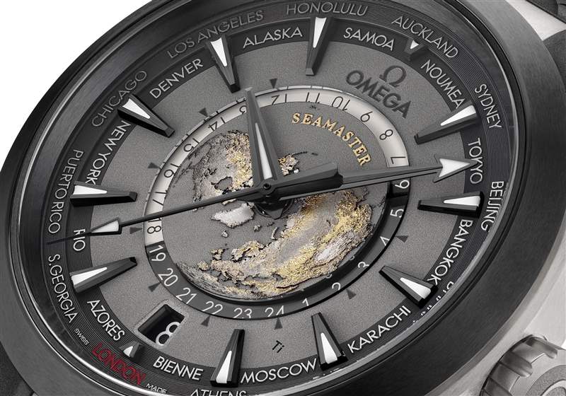 作為環球旅行的必備工具,歐米茄海馬系列 AQUA TERRA 150米腕表43毫米至臻天文臺GMT世界時款是最漂亮,也很有趣的選擇。這款43毫米的表殼采用經過拉絲工藝處理的2級鈦金屬打造,通過拉絲鈦金屬鏈節與表殼連為一體,并配有拉絲鈦金屬折疊表扣。黑色和灰色表盤,搭配經過拉絲工藝處理的黑色陶瓷表圈。表盤中央呈現從北極俯瞰的地球影像,以激光蝕技術雕刻出陸地輪廓與色彩。內表盤外側設有24小時刻度環,指示世界各地的時間,同時還顯示夜晚和白天。