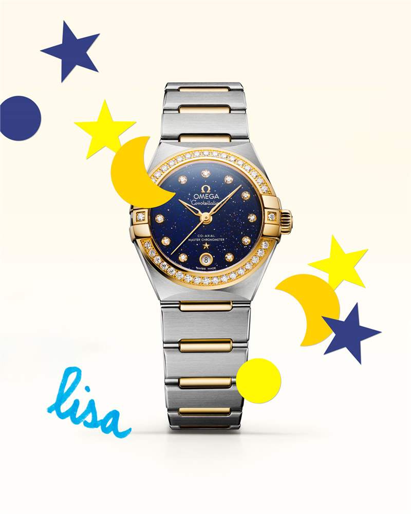 來點柔和加神秘感、星座系列29毫米至臻天文臺表:雋永迷人?的設計細節體現在表殼上經典?的半月形切面?、品牌標志性的「托?爪?」以及 mono-rang 表鏈?上。29毫?米?的尺寸,黃色18K金與不銹鋼的搭配,加上表圈鐫刻的羅馬數字刻度?,藍色砂金石玻璃表盤及鉆石小時刻度?,一切都是傳統華貴的經典「女表相」。