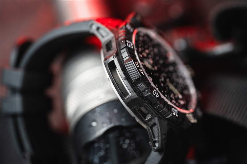 碳纖維增強聚合物外殼在行動中表現(xiàn)出令人印象深刻的彈性。手表戴在我手腕上時所承受的一些沖擊與我多年來在緊急服務中佩戴的其他手表上的那些導致表圈脫落、表鏈彎曲和水晶破碎的沖擊類似。然而,這種情況在醫(yī)療環(huán)境中存在一個缺陷。中殼的裂縫和骨架是細菌和其他有機物質(zhì)駐留的完美區(qū)域。幸運的是,這款手表并不是針對醫(yī)療領域,而是針對戰(zhàn)術行動領域,這個問題在該領域不太重要。