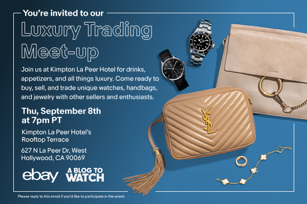 樂(lè)趣從太平洋標(biāo)準(zhǔn)時(shí)間 2022 年 9 月 8 日晚上 7 點(diǎn)開(kāi)始。aBlogtoWatch 和 eBay 的客人除了晚上的活動(dòng)外,還將享用美食和飲料。我們提前感謝 eBay 團(tuán)隊(duì)讓這次活動(dòng)成為一場(chǎng)激動(dòng)人心的活動(dòng)。aBlogtoWatch 期待與您相見(jiàn)