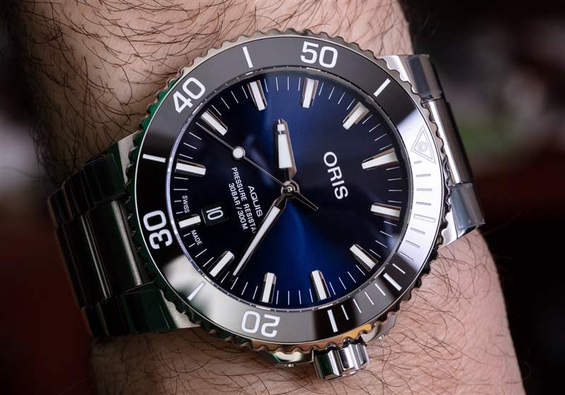 大多數 Aquis 手表最容易識別的元素是表殼、表鏈、表盤和指針。雖然絕不激進,但這些元素可以清楚地識別為來自 Oris。這一點很重要,因為當談到制作精良的潛水表的價值定價時,最常見的權衡之一是獨特的外觀。換句話說,大多數預算(甚至是瑞士)潛水表或多或少看起來像市場上的其他時計。有了 Oris,您就沒有這個問題。