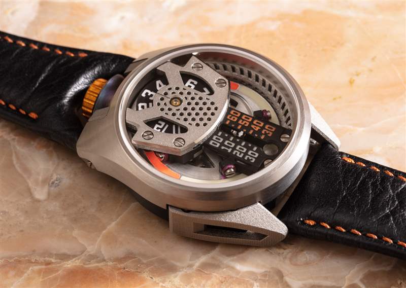 Jumping 小時盤可能不像某些高端瑞士手表那樣從一個小時過渡到另一個小時的平滑和彈性,但 Barrelhand 在這個系統(tǒng)中進行設計非常棒,因為否則,小時環(huán)將具有所謂的“徘徊時間”,這意味著當前時間永遠不會真正成為焦點。就是這樣,但是窗口下方的小線標記旨在描繪眼睛在哪里讀取當前時間可能會受益于更加顯眼。