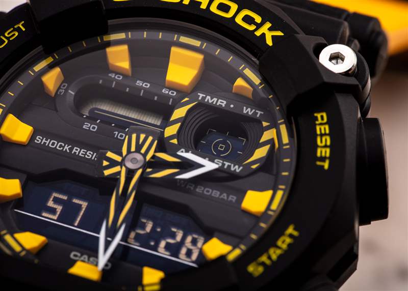 考慮到價格實(shí)惠,但采用大膽的設(shè)計和激進(jìn)的姿態(tài),新的卡西歐 G-Shock?GA900A 系列(此處為參考 GA900A-1A9)是日本制表商針對城市時尚市場(或其他需要耐用手表的地方)。鑒于我對“黑色和黃色”手表的興趣,我喜歡這款帶有黑色和黃色條紋模擬指針的 GA900A 警示膠帶/建筑拖拉機(jī)式版本。