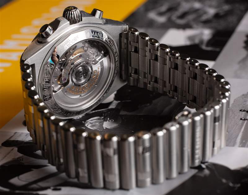 考慮到多樣性,百年靈將 Chronomat B01 42 設(shè)計(jì)為可提供數(shù)十種年份的版本。只需更換顏色和材料,帶有計(jì)時(shí)碼表機(jī)芯的 Chronomat B01 42 表殼就可以以多種有趣的方式呈現(xiàn)。我碰巧喜歡那些帶有對(duì)比鮮明的小表盤(pán)的表盤(pán),而現(xiàn)在,我碰巧更喜歡全鋼表。機(jī)芯并不新鮮,但百年靈自制的 B01 自動(dòng)計(jì)時(shí)碼表表現(xiàn)出色,并且表現(xiàn)良好。它的執(zhí)行力看起來(lái)仍然很棒,雖然在任何方面都不是行業(yè)領(lǐng)先的,但它是一個(gè)穩(wěn)定的 4Hz 頻率運(yùn)動(dòng),具有約 70 小時(shí)的動(dòng)力儲(chǔ)備。您可以通過(guò)手表背面的藍(lán)寶石水晶視窗查看機(jī)芯。