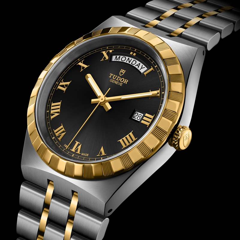 除精鋼外,帝舵還提供皇家雙色精鋼和 18k 黃金版本(28603/28503 系列)。對于后者,18k 金用于缺口表圈、表冠和一些手鏈鏈節(jié)。皇家配備四種男士表盤顏色,包括黑色、藍(lán)色、銀色和金色。確實(shí),在許多豪華手表都采用鮮艷色彩的時(shí)代,色彩并不令人興奮,但皇室成員本質(zhì)上一直是保守的……然而,帝舵確實(shí)提供了一些帶有部分鑲鉆時(shí)標(biāo)的表盤選項(xiàng),以補(bǔ)充其他全羅馬數(shù)字標(biāo)記表盤.