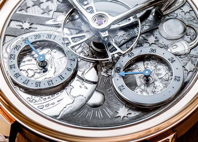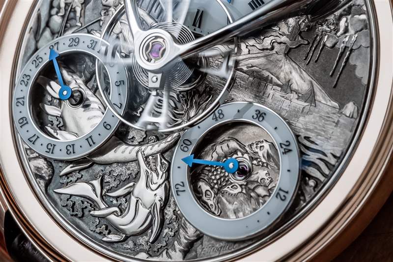 Eddy Jaquet 在距離 MB&F 總部所在地日內(nèi)瓦不遠的納沙泰爾長大。這家高端鐘表(和傳統(tǒng))機器制造商以其與制表領(lǐng)域的其他創(chuàng)作者的靈感合作而聞名,但這是該品牌首次與 Eddy Jaquet 合作打造場景風格的手工雕刻表盤。Jacquet 不是周圍唯一的雕刻師,但他特別出色。他不僅專注于創(chuàng)造有趣的、視覺平衡的構(gòu)圖,而且他的技術(shù)也很出色——不僅在于他能夠在如此小的尺度上尊重比例和幾何規(guī)則,而且在于他如何使用變暗技術(shù)來吸引人們的眼球。表盤上的正確位置。廣告訊息廣告信息結(jié)束