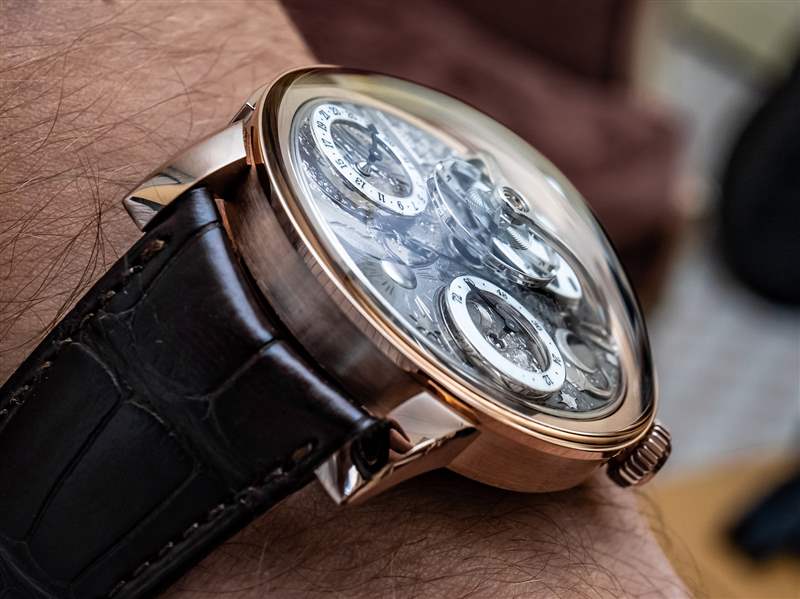 aBlogtoWatch 的 David Bredan 最近在日內(nèi)瓦與 MB&F 會面時獲得了一些手表時間。您可以看到這些表盤令人驚嘆的視覺沖擊力,特別是考慮到“調(diào)色板”,即 LM Split Escapement 表盤。基礎(chǔ)手表是 Legacy Machine 系列中 MB&F 當前的“核心”系列型號,它取代了 LM1。Legacy Machine (LM) 分體式擒縱系統(tǒng)(有關(guān) aBlogtoWatch 的更多信息,請點擊此處)具有44.5 毫米寬,配備由 Stephen McDonnell 為 MB&F 開發(fā)的時間-日期-動力儲存機芯。美麗的機芯配備了一個擒縱機構(gòu),該擒縱機構(gòu)與機芯的其余部分“分開”,并懸停在懸掛在橋板上的表盤上。調(diào)節(jié)系統(tǒng)以 2.5Hz(18,000 bph)的頻率運行,動力儲存為 72 小時,由 296 個零件制成。