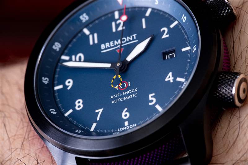 手表的表盤周圍是一個(gè)內(nèi)部旋轉(zhuǎn)的“roto-click”表圈,上面有一個(gè) 60 分鐘刻度。它通過位于表殼右側(cè)的兩個(gè)表冠中的較低者進(jìn)行操作。手表內(nèi)部是一個(gè)名為 BE-36AE 機(jī)芯的 Bremont 機(jī)芯。機(jī)芯開始時(shí)就像瑞士制造的 ETA 2836-2 自動(dòng)(4Hz,38 小時(shí)動(dòng)力儲(chǔ)存)。Bremont 對(duì)其進(jìn)行了修改,并賦予其 COSC Chronometer 認(rèn)證。如果您透過藍(lán)寶石水晶展示底蓋窗口觀察機(jī)芯,您會(huì)看到新的黑色組件,它是自動(dòng)上鏈系統(tǒng)的一部分。在保護(hù)自動(dòng)轉(zhuǎn)子與機(jī)芯其余部分連接的精密軸點(diǎn)時(shí),這種由 Bremont 設(shè)計(jì)和配備的組件比 ETA 庫(kù)存零件更耐沖擊。盡管機(jī)芯的展示讓 MBII 少了一些工具手表的信譽(yù),但在我看來,機(jī)芯的觀點(diǎn)是值得的。至少 Bremont 允許消費(fèi)者選擇實(shí)心或展示底蓋是否滿足他們的個(gè)人需求。