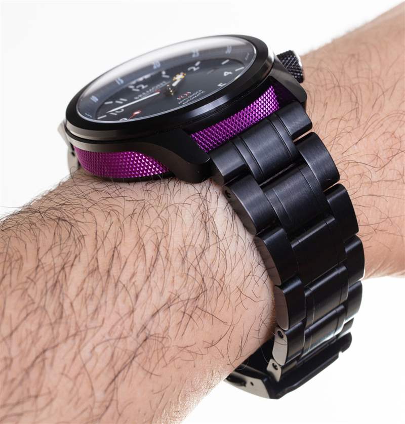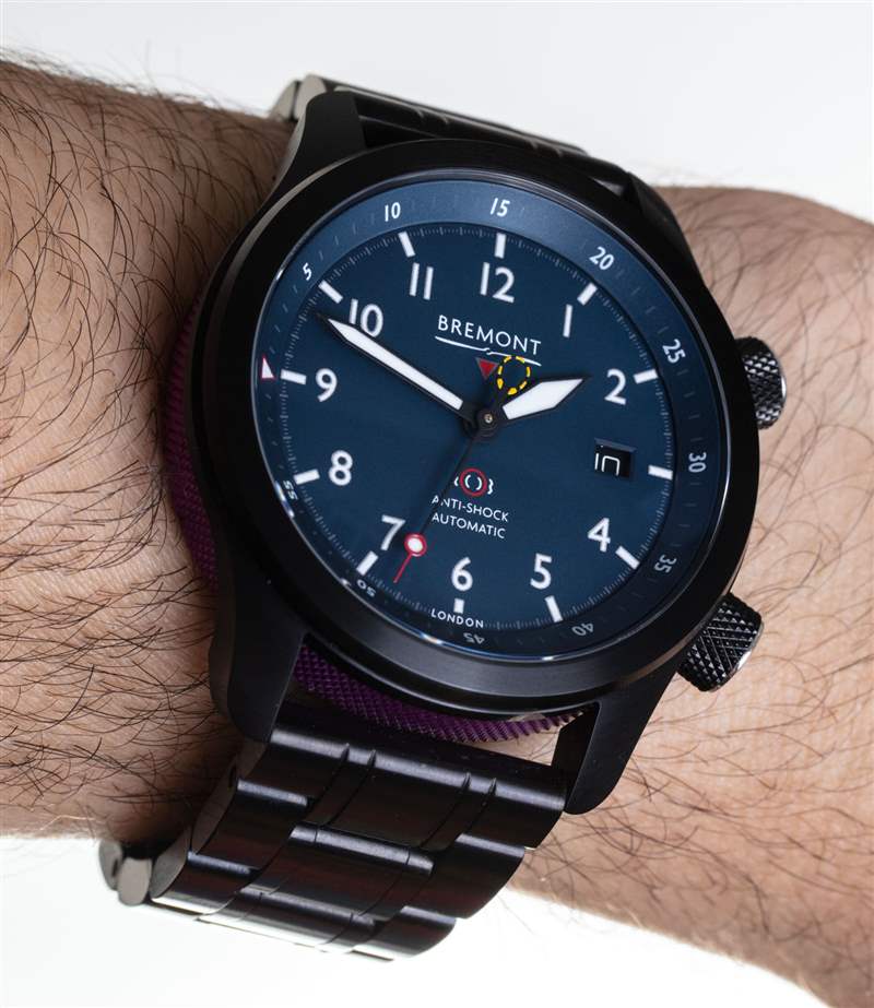 Bremont 并沒有在表帶或表鏈部門進(jìn)行創(chuàng)新,但 MBII 手表提供了一系列具有匹配縫線的高品質(zhì)運(yùn)動(dòng)表帶。還有如圖所示的鋼制金屬表鏈(天然或 DLC 涂層飾面)可供選擇。這是 Bremont 的傳統(tǒng)組件,雖然它不是一個(gè)糟糕的手鐲,但在這個(gè)價(jià)位上,它無法提供許多其他手鐲的體驗(yàn)。對(duì)我來說,最大的問題是缺少末端鏈接,無法更好地將手鏈與表殼進(jìn)行視覺整合。老實(shí)說,這并不是什么大問題,但是一旦您習(xí)慣了帶有末端鏈節(jié)的手鏈的外觀和感覺,沒有它們的手鏈有時(shí)會(huì)看起來不完整。此外,雖然部署的硬件很堅(jiān)固,它缺乏當(dāng)今許多消費(fèi)者認(rèn)為引人注目的任何花哨的微調(diào)功能。MBII 手表在手鏈上看起來很光滑,但在許多可用的皮革或橡膠表帶之一上最舒適。