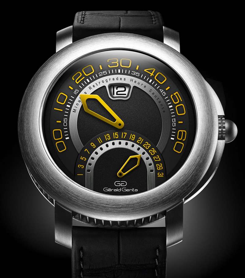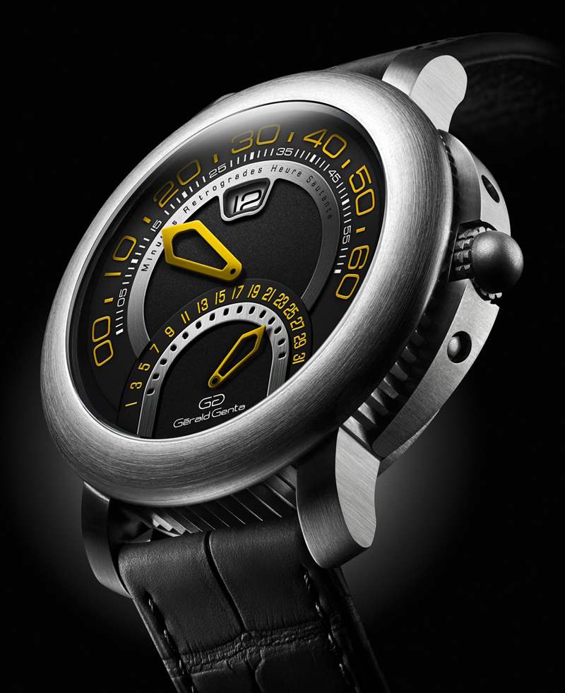 Arena手表一直很有趣,這款運動型鈦金屬搭配黑色和黃色(我碰巧非常欣賞的色調),搭配啞光黑色鱷魚皮表帶。表盤非常讓人想起以前的 Bi-Retro 手表,但進行了一些視覺調整以保持新鮮感。雖然該設計并非由 Gerald Genta 本人設計,但您可以很容易地發現這種略微新的外觀采用了許多高度特殊的設計 DNA。我也碰巧欣賞了新的 Gerald Genta 標志。它有一種 20 世紀后期的未來主義色彩,我認為它忠實地代表了 Genta 先生所珍視的價值觀和美學。