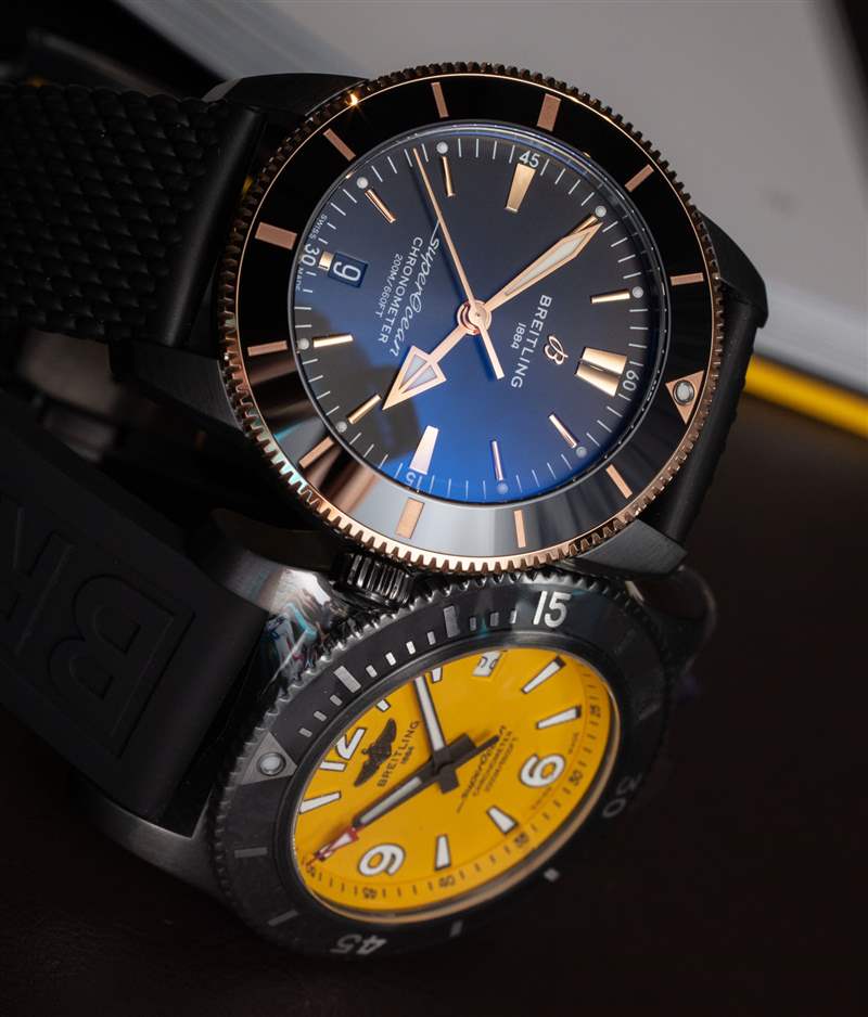 百年靈的手表追求最大的全球吸引力,這就是為什么其中許多手表都有不同尺寸的原因。也許除了百年靈之外,還沒有哪家公司花費如此多的時間來嘗試生產不同尺寸的同款腕表(同時出售)。該策略可能會使當前的系列看起來讓消費者感到困惑,但實際上,它有助于百年靈在全球銷售相同的手表,但能夠滿足更特殊的消費者偏好,例如表殼尺寸。因此,這款 44 毫米寬的百年靈 Superocean Heritage II 腕表與 42 毫米寬的腕表大致相同,只是稍大一些。這款潛水表款的防水深度也達 200 米,表盤上方有圓頂藍寶石水晶鏡面。