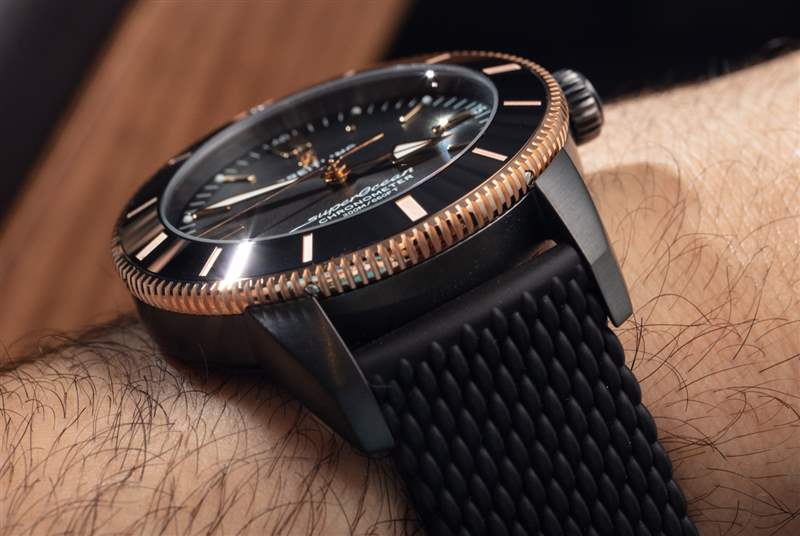 雖然黑色橡膠表帶質量上乘(并搭配百年靈非常好的黑色金屬展開式表扣之一),但我認為將這款手表與匹配的黑色和 18k 紅色金手鏈相匹配是很自然的。黑色和金色手表已經流行了一段時間,但按照今天的標準來說仍然是相當小眾的。我期待著看起來卷土重來。廣告訊息廣告信息結束