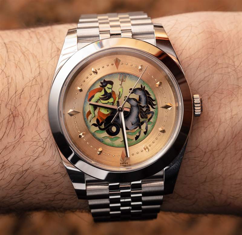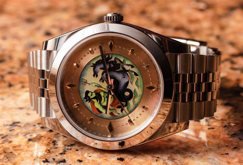 在手腕上,我覺(jué)得這些很漂亮,但建議如果你想搭配這個(gè)金色表盤(pán)底座,那么選擇搭配金色指針的 Datejust 41。你可以在這里看到我完整的 aBlogtoWatch 勞力士 Datejust 41 手表評(píng)論。藝術(shù)表盤(pán)是我喜歡的東西,因?yàn)槲乙恢卑l(fā)現(xiàn)表盤(pán)是展示繪畫(huà)的絕佳機(jī)會(huì)。有些手表從字面上理解這一點(diǎn),無(wú)論您喜歡哪種類型的藝術(shù),我保證那里有適合您的手表表盤(pán)。您無(wú)需對(duì)勞力士或激發(fā)這種現(xiàn)代再創(chuàng)作靈感的特定復(fù)古景泰藍(lán)琺瑯表盤(pán)有親和力,即可享受景泰藍(lán)琺瑯?biāo)芴峁┑乃囆g(shù)美感。