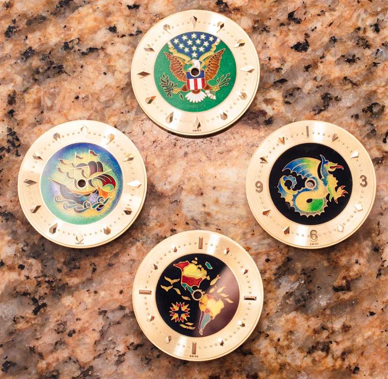 總部位于加拿大的Ematelier如今以合理的價(jià)格帶來(lái)了藝術(shù)琺瑯表盤(pán)的美感和技術(shù)。當(dāng)我上次談到Ematelier 時(shí),我正在回顧它的一款琺瑯彩繪限量版女士手表.?今天,我將討論一款男士產(chǎn)品,但 Ematelier 不能完全以限量版的形式出售,因?yàn)樗且环N特殊的表盤(pán),可以在售后市場(chǎng)安裝到現(xiàn)代勞力士 Datejust 41 手表上。以下是 Ematelier 創(chuàng)作的幾款表盤(pán),每一款的靈感都來(lái)自于 1940 至 1960 年代為勞力士手表生產(chǎn)的原創(chuàng)景泰藍(lán)琺瑯表盤(pán)。具體來(lái)說(shuō),這些特殊的重新創(chuàng)建表盤(pán)慶祝勞力士“美洲地圖”參考 6085、海王星參考 8382、龍參考 8651、Caravelle 參考 6100 和美國(guó)鷹參考 6085。
