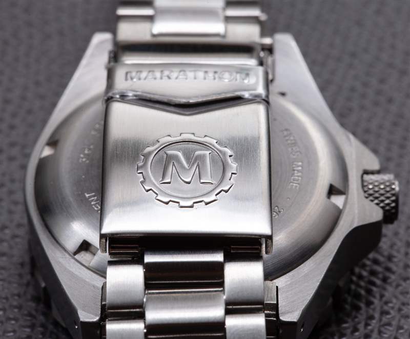 對我來說,Marathon 在 36 毫米北極 MSAR Auto 中所做的最重要的改進是從表盤上去除了 Marathon 圖形標志,并將其放置在表鏈展開扣上。該品牌嘗試在表盤上使用圖形徽標,但這并沒有太大意義(他們是學習這一點的眾多品牌之一)并最終在僅一代產品后將其刪除?,F實情況是,無論出于何種原因,圖形標志往往永遠不會像表盤上的文字標志那樣好看。除非一個品牌足夠光滑,以至于他們的標志可以很好地用作 12 點鐘的小時標記。