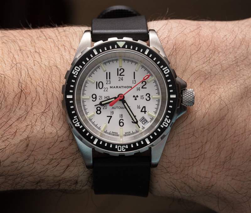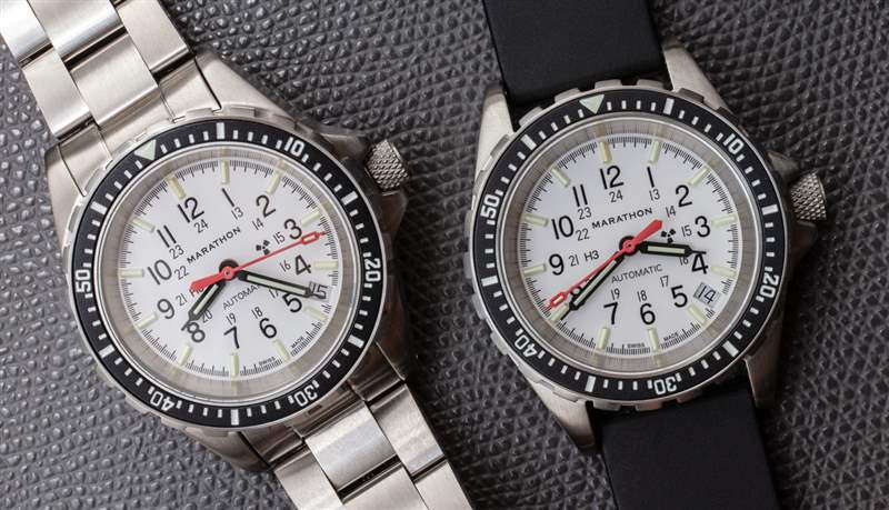 有很多人想要一款自動版的白色表盤 36 毫米 Medium Diver’s Quartz 手表,現在它就在這里。接下來,Marathon 可能會為其較大的時計嘗試白色表盤,例如 40 毫米寬的 GSAR(General Search & Rescue)手表。