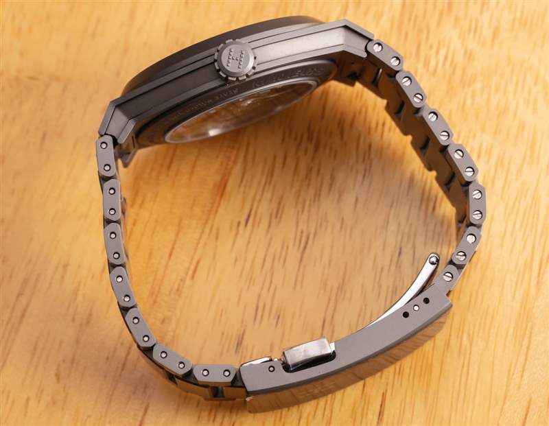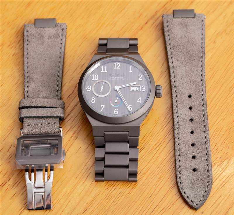 霍拉奇與三鏈鈦手鏈一起加入了第二條表帶。表帶是磨砂皮風格的皮革表帶,優(yōu)雅地逐漸變細。由于我非常堅持要成為手表手鐲的人,因此出于個人喜好,我可能永遠不會將其他體面的(如果不舒服,則另當別論)手鐲換成表帶。手鐲有一個帶有按鈕釋放的專有展開式表扣。部署者工作得很好,但它的風格有點通用。此外,對我來說,高度拋光的鈦金屬表扣系統(tǒng)與手表其余部分的深色噴珠鈦金屬形成鮮明對比。我希望至少打開扣環(huán)的延伸推桿具有匹配的噴砂飾面和顏色。再次,這是一個小問題,可能被展開扣的整體質(zhì)量所包含(即使是非常昂貴的品牌也容易在很多時候搞砸)。我可以安全地打開和關閉它,這證明了表扣的性能。