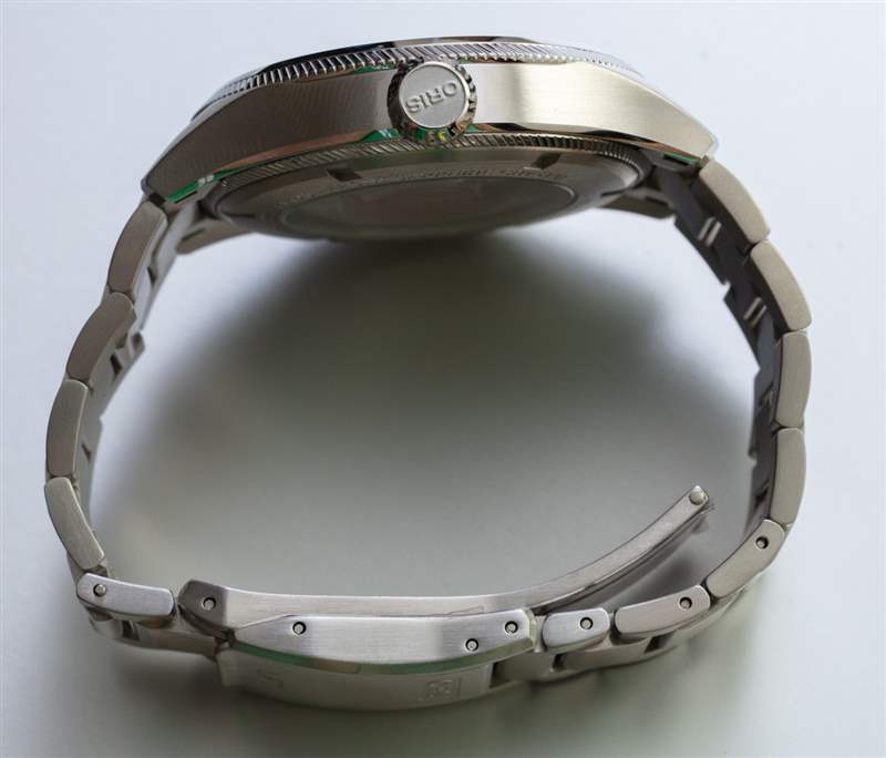 附在手表上的是一個三連桿錐形表鏈,與 ProPilot Big Date 的外觀相得益彰。我最喜歡的手鐲部分是展開式表扣。對于這款手表來說它并不是全新的,但對于 Oris 來說它是較新的,并且基于駕駛艙安全帶的打開系統。它不僅看起來很酷,而且操作起來很舒服。雖然我想象扣子可能會不時抓住東西,所以我想知道安全鎖是否有用。話雖如此,扣子從未在我身上打開過。否則手鐲相當簡單直接。我覺得 Oris 可以設計一個微調系統,或者至少提供一個半連桿。Oris Aquis 潛水表的表帶功能更強大,包括半鏈節、微調裝置和鏈節之間的螺絲桿。ProPilot Big Date 手鏈要簡單一些,