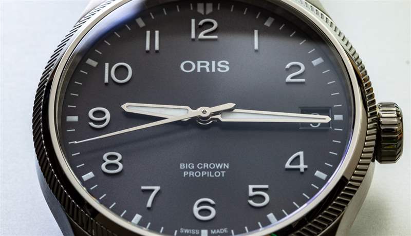 熟悉 Oris Big Crown ProPilot 手表的人會認出表殼設計,但也會注意到 Oris 如何采取措施使精鋼表殼更具吸引力。許多現有的 ProPilot 表殼都被賦予了更具工業風格的單一飾面。這種新的 Big Crown ProPilot Big Date 分類(也有其他款式)具有對比拋光表殼,帶有拉絲飾面和鏡面拋光裝飾。這種新的裝飾風格確實提升了表殼的外觀,并有助于帶出使 ProPilot 系列與眾不同的特殊“渦輪式”表圈。