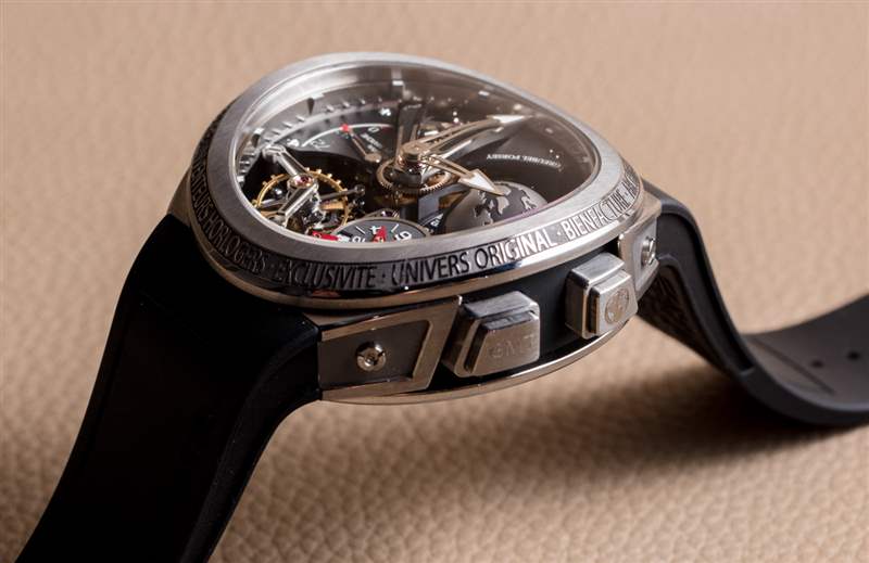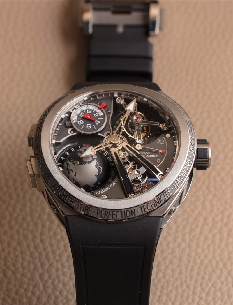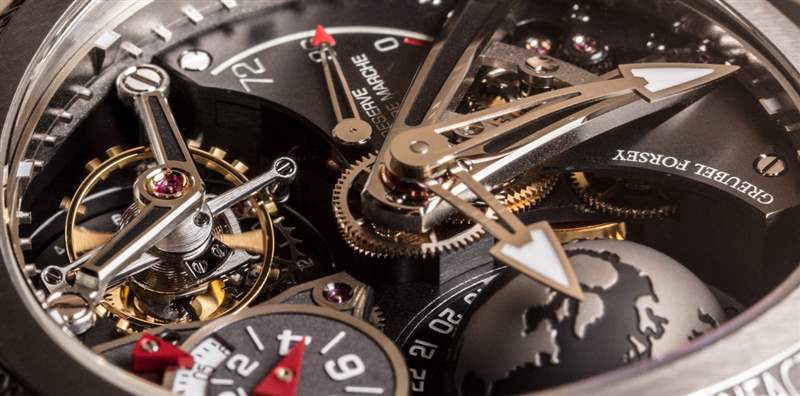 GMT Sport 內(nèi)部是現(xiàn)有機(jī)芯的新版本:Greubel Forsey GMT 陀飛輪。該機(jī)芯包括一個(gè)以 25 度傾斜角安裝的陀飛輪(每 24 秒旋轉(zhuǎn)一次),以及時(shí)間、動(dòng)力儲(chǔ)存指示器、日/夜 (AM/PM) 指示器和 GMT 指示器。后一種功能使用表盤上的半球形,優(yōu)雅地翻轉(zhuǎn)一天,以及12小時(shí)指示器和表殼后部的移動(dòng)圓盤。如您所見(jiàn),GMT Sport 的首發(fā)版本將有一個(gè)“黑色地球”,而 GMT Sport 的后續(xù)首批型號(hào)將有一個(gè)更傳統(tǒng)的藍(lán)色地球。黑色地球模型將作為非常有限的套裝生產(chǎn)(如果我沒(méi)記錯(cuò)的話,大概有 5 到 10 件)。廣告訊息廣告信息結(jié)束