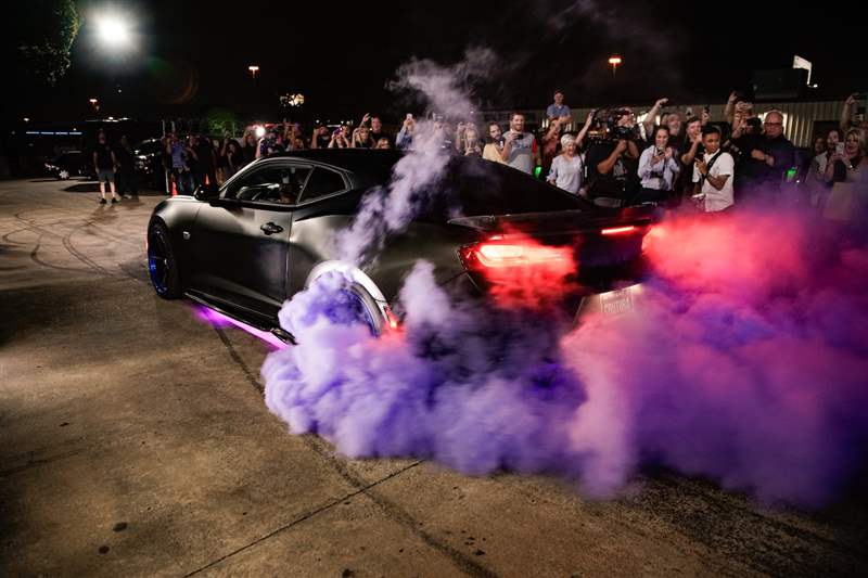 與染料混合的冒煙輪胎在以 Coutura 為主題的 Camaro 汽車周圍產生紫色煙霧,表示獲勝者。四名決賽選手每人都獲得了帶有顏色的卡片。拿著紫卡的那位先生,大概是大多數人會因為贏得車而感到高興的那種人。他想要它,他對此很聰明,他對此很謙虛,你可以肯定他會成為威斯康星州家鄉街區中最酷的人。他也碰巧是一個認真的手表收藏家,他戴著藍色表盤的精工潛水計時碼表,他是在參加汽車贈品的那天購買的。