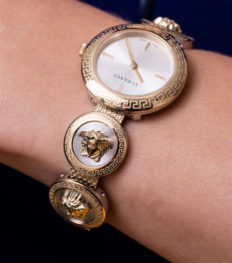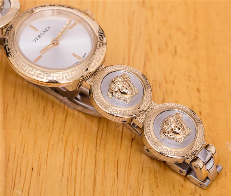 范思哲通過長期的設(shè)計和制造合作伙伴天美時集團(tuán)生產(chǎn)手表已有一段時間了。在“時尚手表”的萬神殿中,與眾多同樣擁有手表的時尚品牌競爭對手相比,范思哲在哪里?這家著名的意大利時裝制造商由多年前在佛羅里達(dá)州邁阿密被謀殺的創(chuàng)始人的姐姐 (Donatella) 經(jīng)營,一直以其獨特的美學(xué)而嗡嗡作響,這種美學(xué)通常圍繞著古代神話中的美杜莎主題展開。今天,我來看一款范思哲女士腕表,型號為 VERF000818 Versace Medusa Stud Icon。