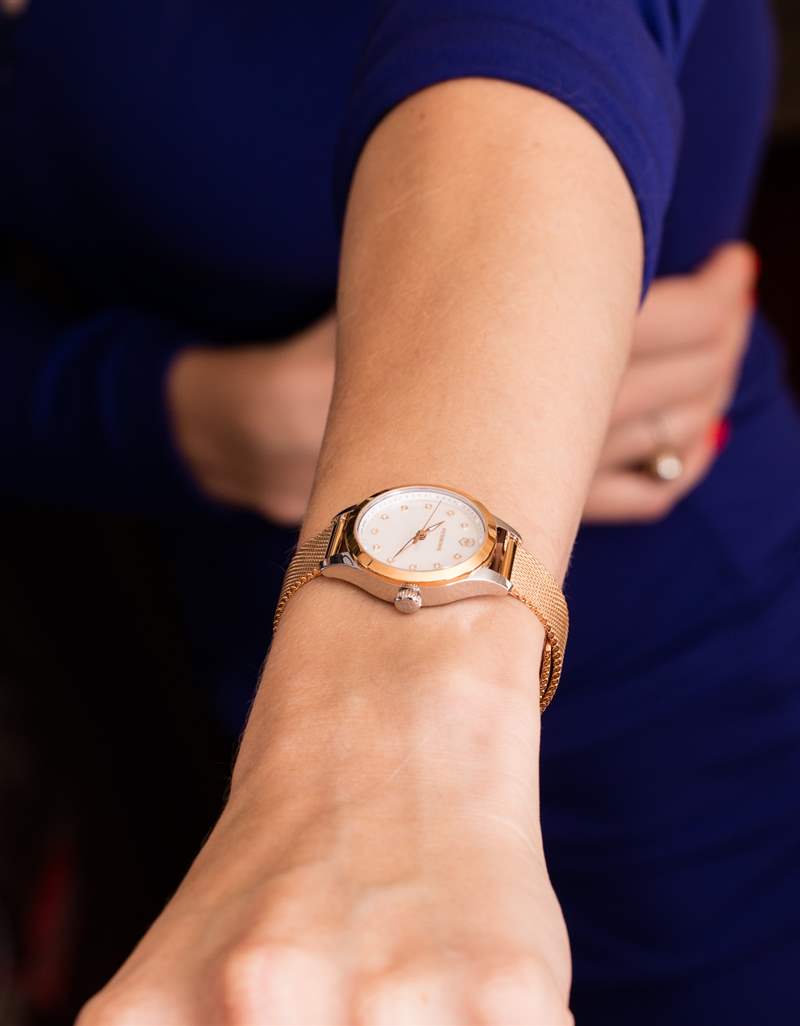 精鋼表殼寬 28 毫米,經過高度拋光處理,搭配玫瑰金色表圈和表盤元素。米蘭網狀金屬手鏈也采用玫瑰金色調,使作品的整體構成呈現兩種色調。Victorinox Swiss Army 還生產其他一些款式的 Alliance XS(撰寫本文時有五個版本),它們在不同的表盤甚至表鏈上看起來都明顯不同。如果這款手表的想法適合您的手腕或您認識的人,但顏色不起作用,那么值得看看其他型號的比較。