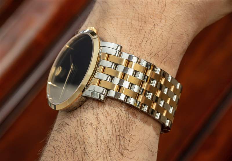 佩戴這款基于自動機(jī)芯的 42 毫米寬雙色 Movado Red Label 手表,感覺就像是昨天的博物館表盤,我今天想佩戴。如果我嘗試將它與我通常喜歡的工具手表進(jìn)行比較,那么我將很難評估這種手表的價(jià)值。我所做的是考慮博物館表盤的永恒美學(xué)價(jià)值,它的視覺吸引力繼續(xù)吸引我(可能還有其他人)。作為一款精致的時(shí)尚腕表、富有表現(xiàn)力的正裝腕表或男士珠寶腕表,摩凡陀博物館表盤的滿足方式幾乎與其他任何產(chǎn)品都不同。在“極簡主義”手表仍然非常流行的時(shí)代,也許是時(shí)候考慮一??款“原創(chuàng)”手表了。