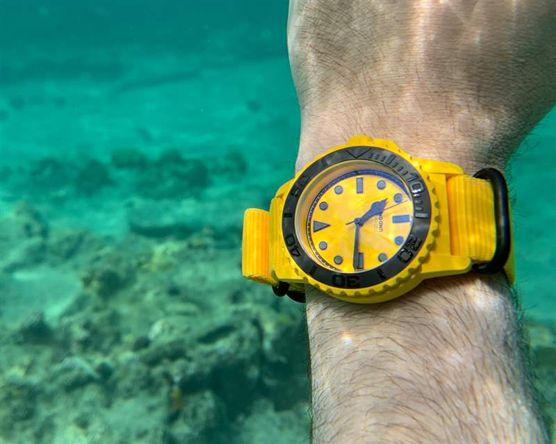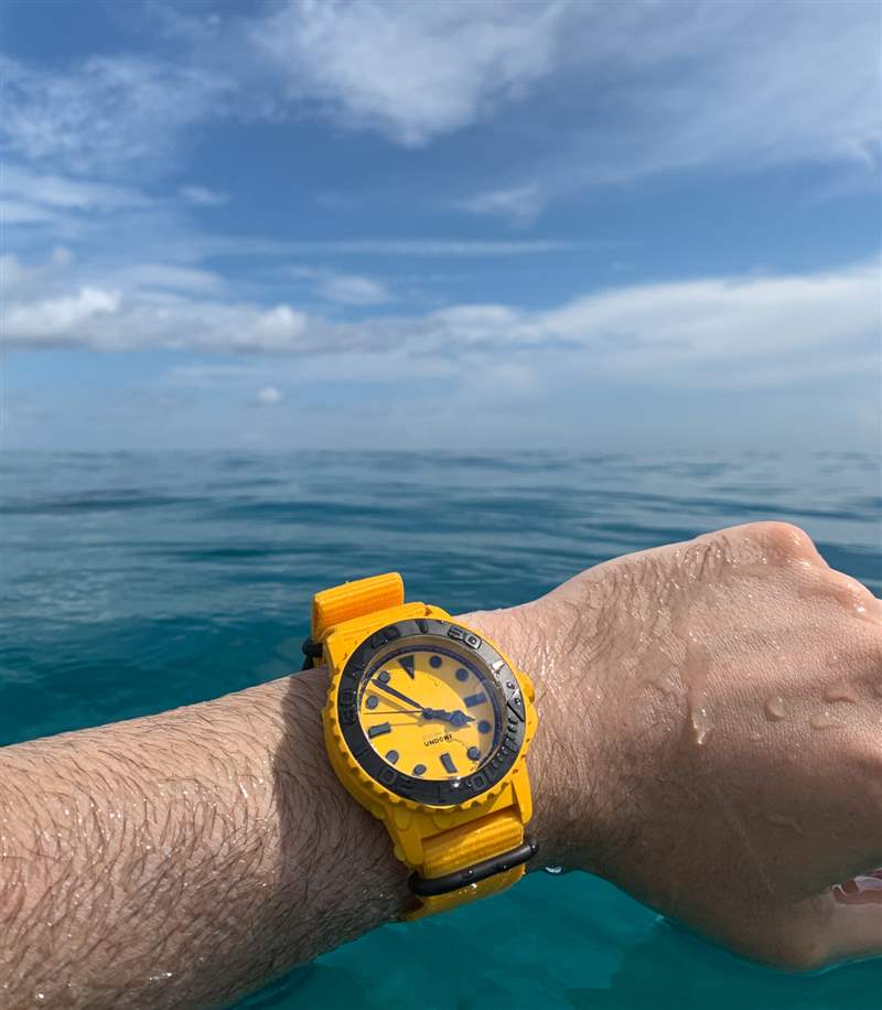 在他們真正考慮弄濕手表之前,沒有人會考慮手表的耐用性。每次第一次將新鮮手表放入水中時,都會有片刻的擔(dān)心。我以前有過手表起霧——但從來沒有泛濫過——所以這種擔(dān)心并非沒有道理。潛水表不僅僅是防水;它們還必須非常易于閱讀、耐用,并且——最重要的是——舒適。在定制的黑色和黃色 NATO 風(fēng)格表帶上,Undone Aqua 佩戴在手腕上非常舒適,這款 43.5 毫米寬的時計也恰好有一個重量驚人的表殼。廣告訊息廣告信息結(jié)束