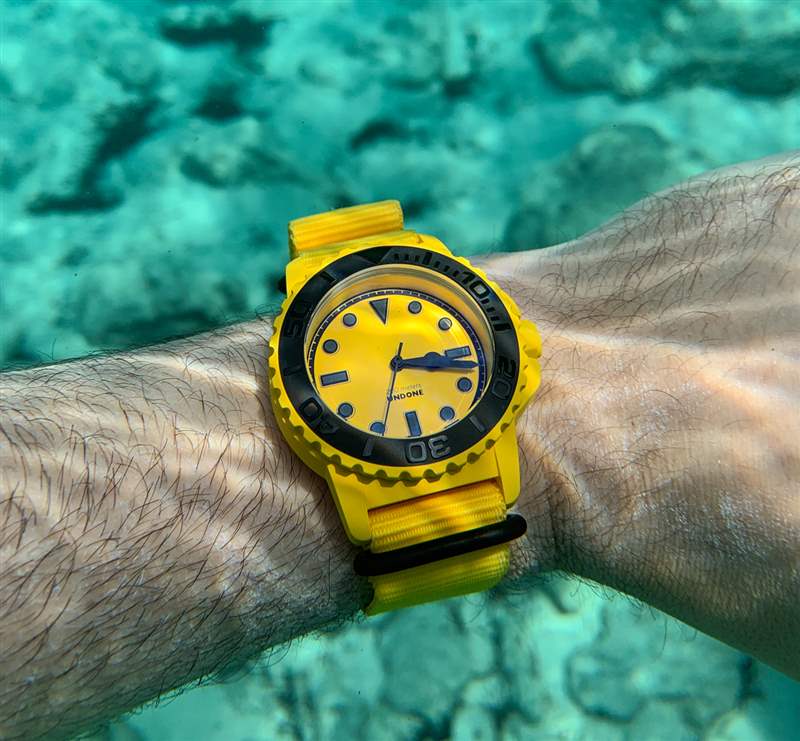 是的,我對 Undone Aqua BLK + YLW 有商業(yè)利益,但零售價僅為585 美元(利潤分成多種方式),我認(rèn)為我不需要在這里為不公平的利潤辯護(hù)。我的目標(biāo)是為像我這樣的鐘表愛好者帶來有趣、方便和有趣的腕表體驗(yàn)——在佩戴我的 Undone Aqua BLK + YLW 之后,我覺得我已經(jīng)能夠(至少對我自己)做到這一點(diǎn)。