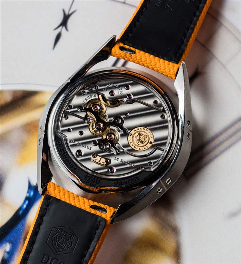 總部位于瑞士 Valle-de-Joux 的David Candaux是一個多代制表家族的一員。他住在制表大師和金屬裝飾師 Philippe Dufour 附近,他的作品在 Jaeger-LeCoultre、 MB&F(HM6 機芯)、Fonderie 47、Montandon等品牌的超豪華時計中占有重要地位。幾年前,他——和他的許多同時代人一樣——在自己的“D.?Candaux”的名字并發布了他的 DC 1 手表。迄今為止,他的每款時計都限量發行八枚。在 DC 1 模型之后,他繼續使用aBlogtoWatch 在這里親身體驗的著名 D. Candaux DC6 半獵人.?2019 年,David Candaux 發布了 DC 6 Half Hunter 的新版本,即 DC 6 Solstice Titanium Half Hunter 1740(簡稱“DC 6 Solstice”),它更具俏皮感和現代感,色彩鮮艷,可作為限量版八件(每件),帶有紅色、藍色或橙色(如圖)。