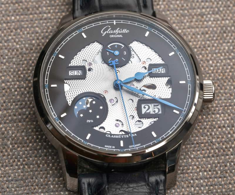 從技術上講,開放式表盤效果很好,因為它提供了鏤空外觀,同時保留了易讀性和功能性(格拉蘇蒂原創品牌的標志)。話雖如此,可以提出一個很好的論點,即表盤鏤空幾乎沒有增加美學上的意義,因為它提供了一個“有趣”的表盤外觀。鏤空手表通常很受歡迎,因為它們使表盤看起來很漂亮,以換取一些降低的易讀性或整體實用性。在這里,我們有易于閱讀的藍鋼指針和萬年歷以及月相信息,但在美學部分并沒有添加太多。所以對我來說,這是一個“半途而廢”的骨架化項目,是一個很好的實驗,但我不確定它是否會顯著增加這款手表的個性。不過,如果把它送給我,我很樂意戴上它。廣告訊息廣告信息結束